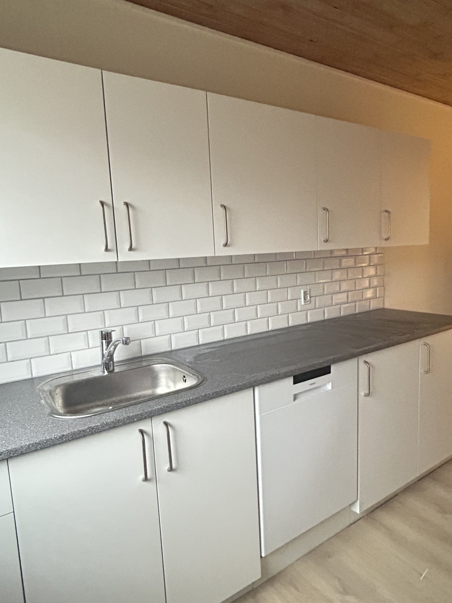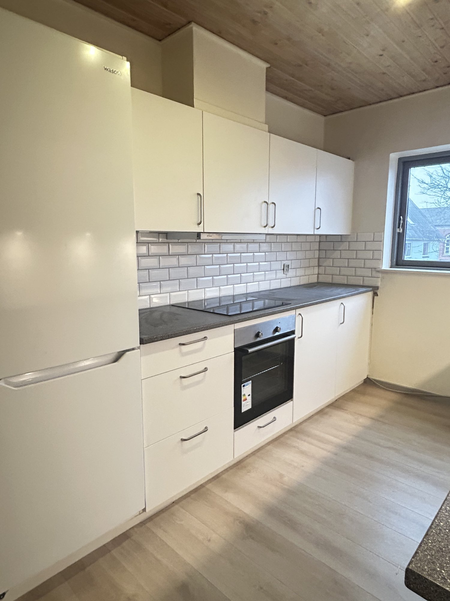 Helt nyt Kvik køkken med alt i hvidevarer - Indbygget ovn, keramisk kogeplade, køle-fryseskab og opvaskemaskine. Lejligheden indeholder en entre, stor fordelingsgang, et soveværelse med indbyggede skabe, et værelse, en stor lys stue og et badeværelse.