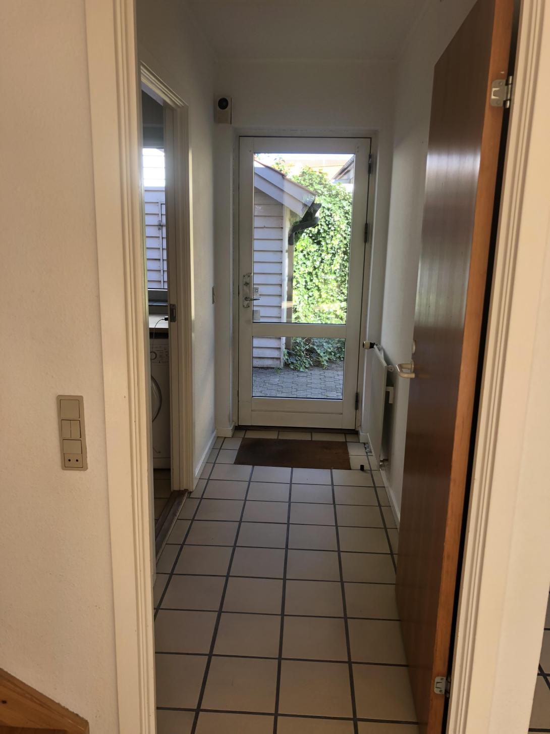 Lejemålet indeholder rummelig entré. Vaskerum med vaske-tørremaskine og fast skab.