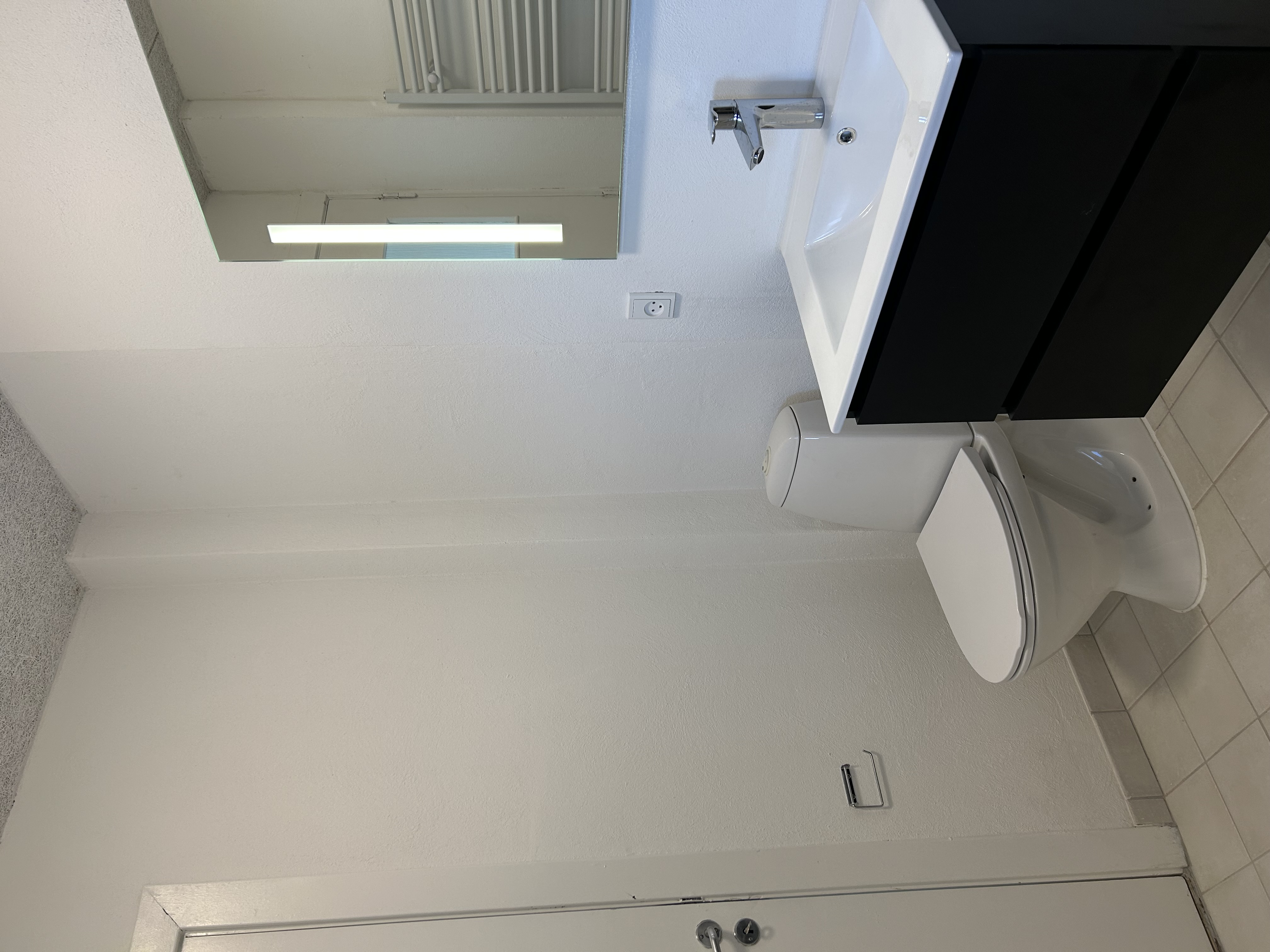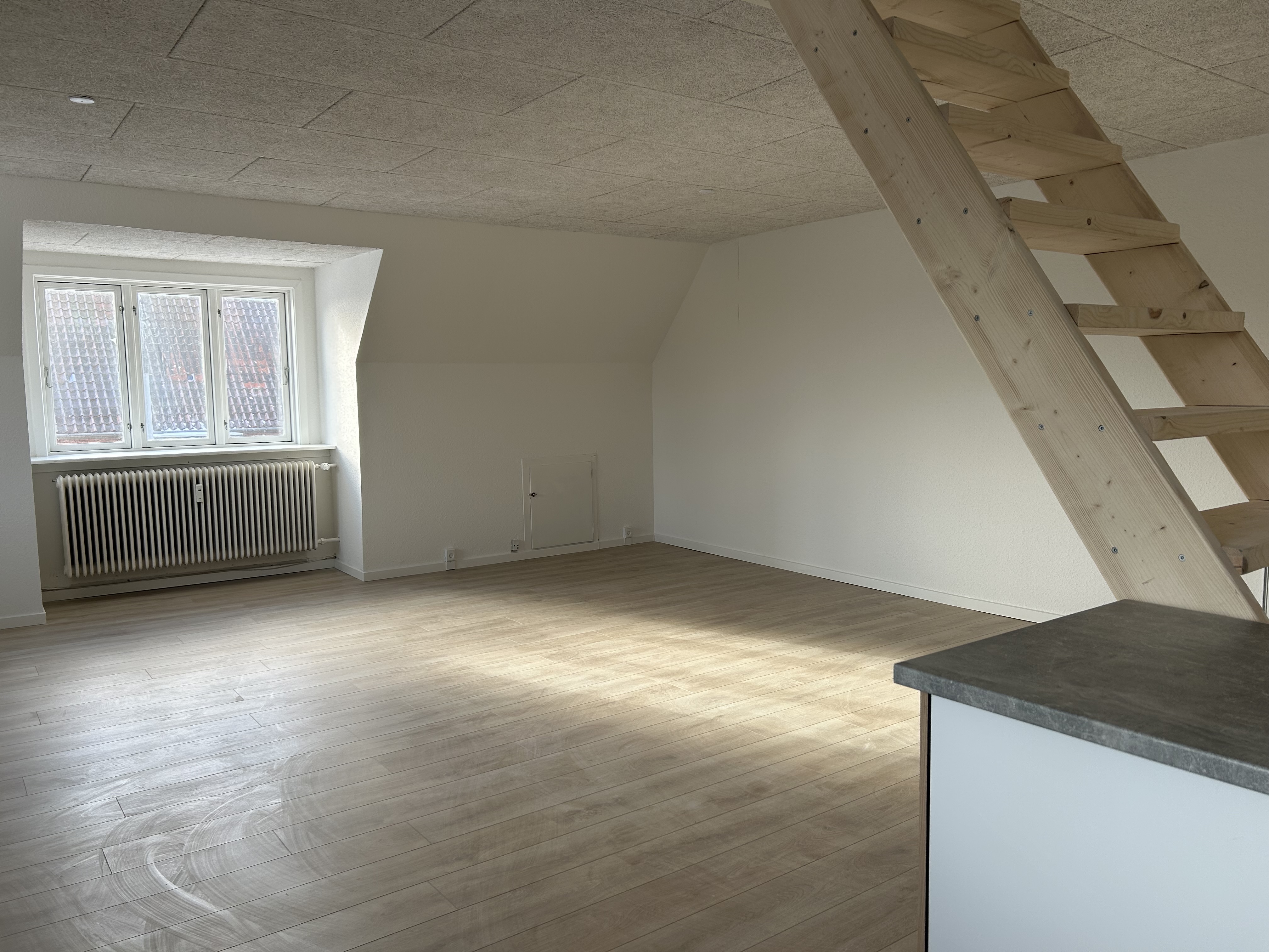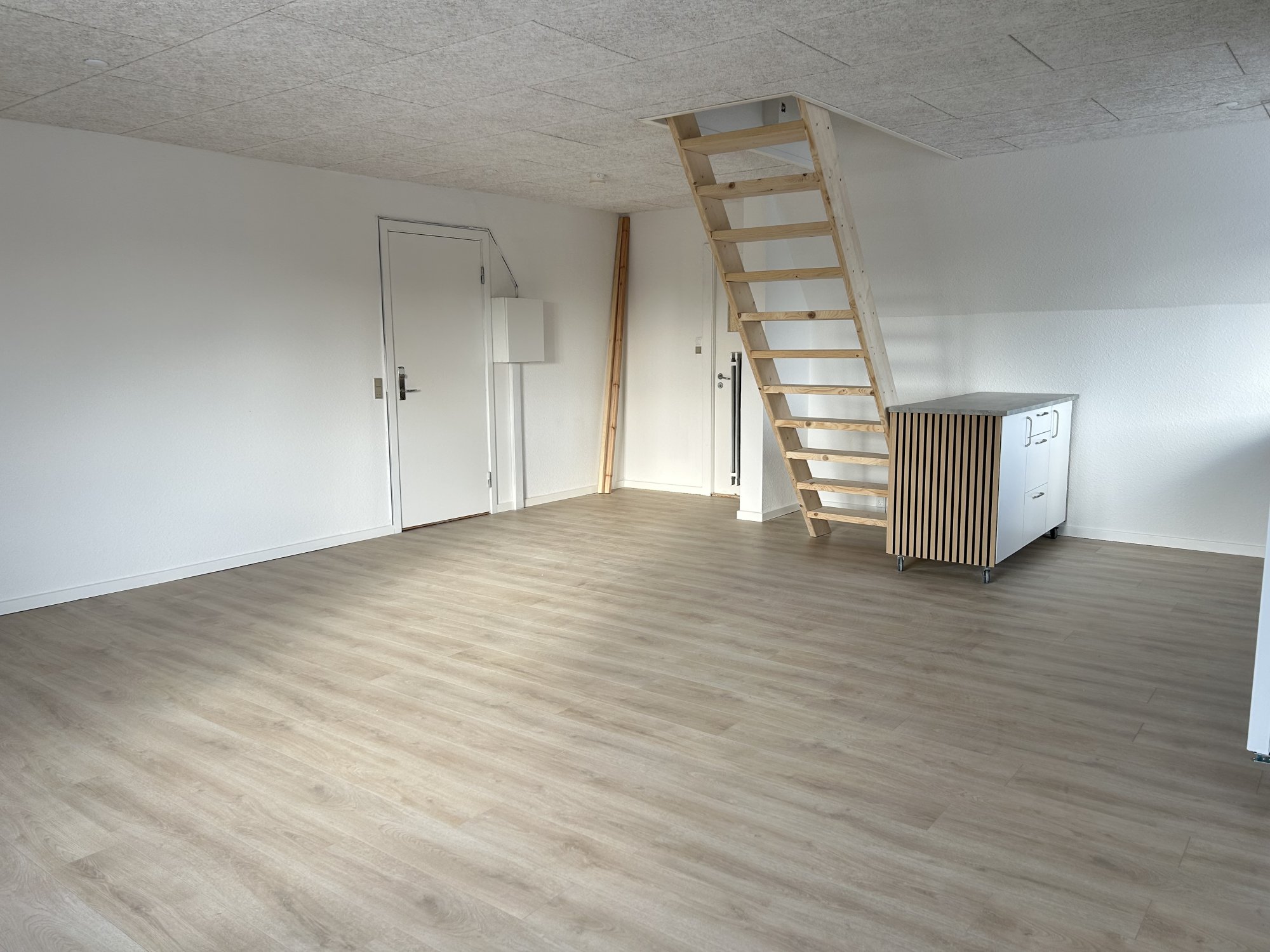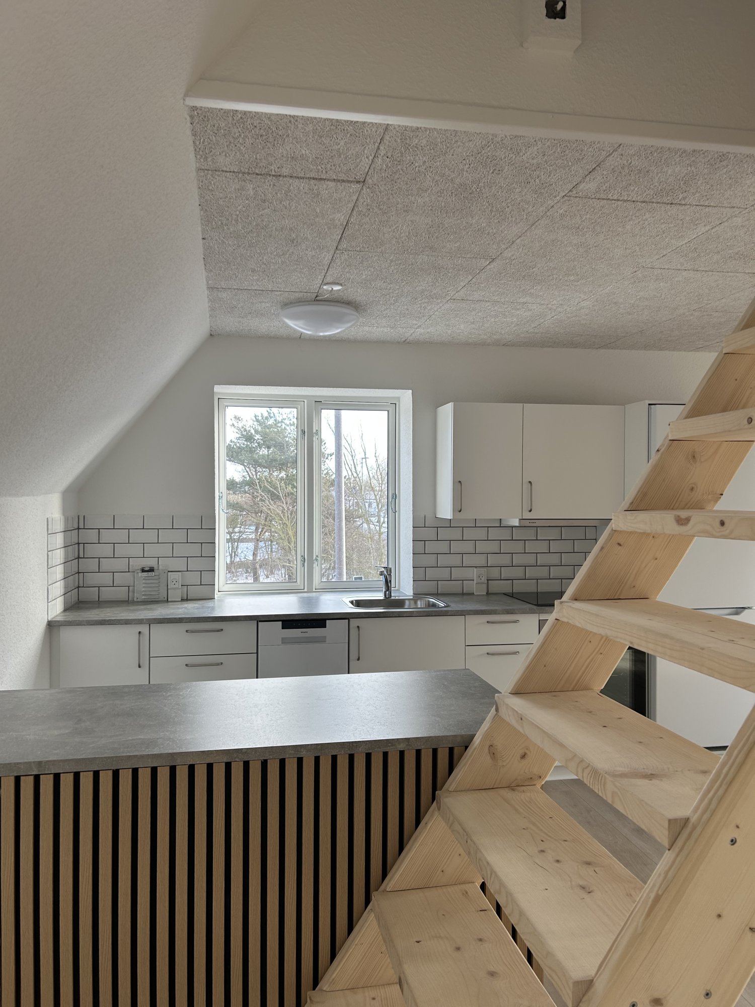 I lejligheden er et helt nyt Kvik køkken med alt i hvidevarer - opvaskemaskine, køle-fryseskab, indbygget ovn og keramisk kogeplade. Køkkenet er i åben forbindelse med stuen. Til venstre for køkkenet ligger badeværelset.