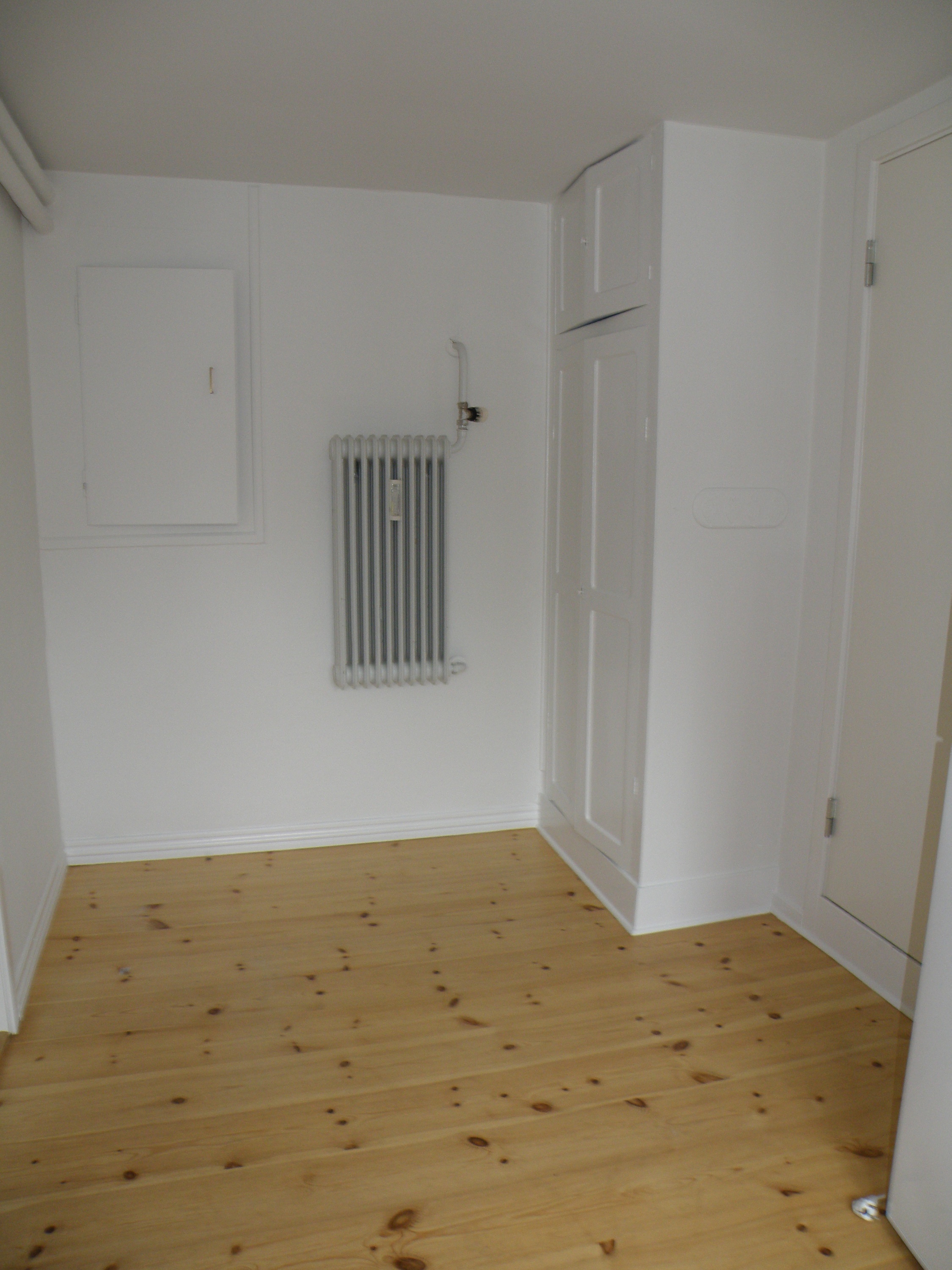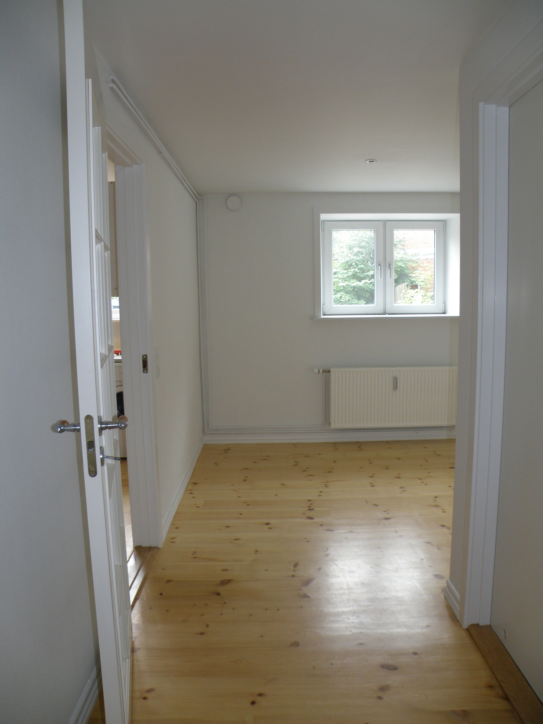 Afhøvlede og lakerede trægulve i hele lejligheden.